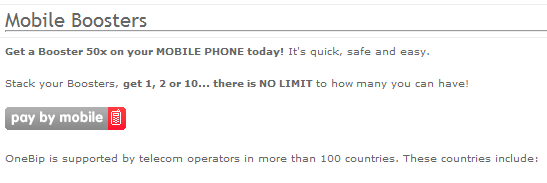 To do it, you need to click pay by mobile, and then it will bring you to onebip. If you dont already have an account, make one and follow the directions on the site.